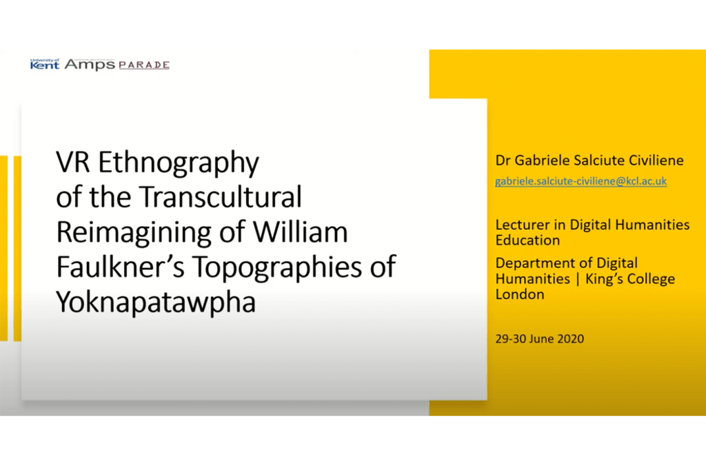 Dr. Gabriele Salciute Civiliene gives a talk about ‘VR Ethnography of the Transcultural Reimagining of William Faulkner’s Topographies of Yoknapatawpha’ in the latest AMPS Parade series.